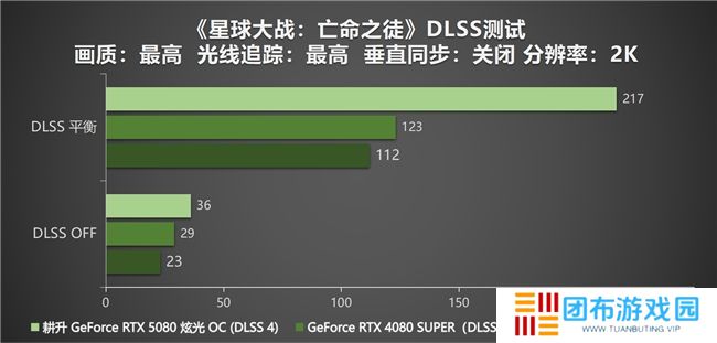 《龙腾世纪:影障守护者》是一款支持光线追踪技术的游戏,为确保游戏画面的流畅和细腻,使得玩家在这款游戏中所需的硬件配置也随之提高。在测试中可以看到,耕升 GeForce RTX 4080 SUPER和GeForce RTX 4080 在最高画质、光线追踪开启、DLSS打开时,4K分辨率下GeForce RTX 4080 SUPER有134帧,GeForce RTX 4080有119帧,两款显卡都有着比较优异的性能。而耕升 GeForce RTX 5080 炫光 OC能够达到260帧的超高性能。可见《龙腾世纪:影障守护者》在启用DLSS 4后,耕升 GeForce RTX 5080 炫光 OC在4K分辨下的帧数表现,拥有近94%的性能提升。