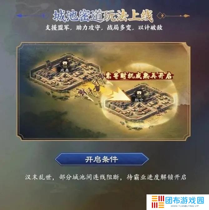 就是霸业进度解锁城池连线,前期1V1,某些霸业进度推进之后才可以恢复一些连线,支援队友。