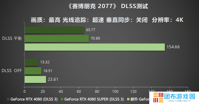 而在4K测试中,耕升 GeForce RTX 5080 追风更是拥有平均154.66帧的表现,比GeForce RTX 4080 SUPER的70.89帧有着近118%的提升。由此可见,即便是在《赛博朋克 2077》这款光追游戏中,DLSS 4技术带来的性能提升远比DLSS 3要更为显著,让玩家能够以更高的帧数在高分辨率下畅玩,同时还能享受到光线追踪技术全开的画面表现。