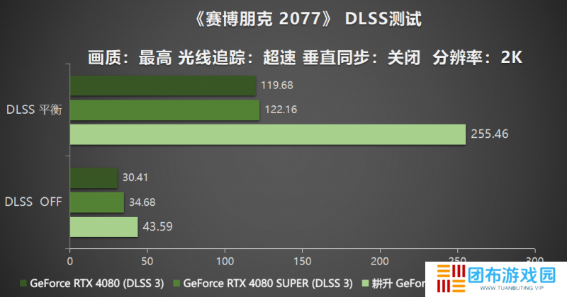 从2K测试中可以看到,耕升 GeForce RTX 5080 追风借助NVIDIA DLSS 4技术,能够获得高达255.46帧的平均帧数,相比采用NVIDIA DLSS 3技术的前代两款显卡均有超过100帧的提升。