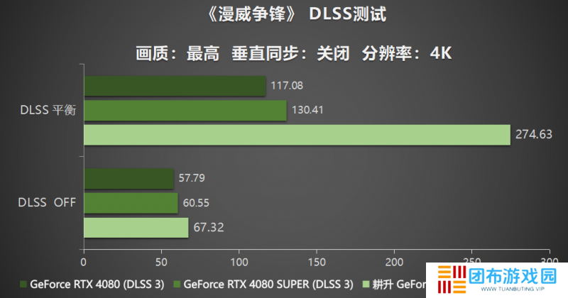 在4K分辨率下,耕升 GeForce RTX 5080 追风凭借着DLSS 4技术的加持,即便不开启DLSS技术,也能在67.32帧的平均帧数下流畅运行。而在DLSS 平衡模式下依旧拥有274.63帧的平均帧数,杜绝了卡顿等情况。该游戏通过DLSS 3技术的优化已享有优越的游戏体验,而在借助DLSS 4技术后,进一步提高了玩家在高分辨率下的高帧数游戏体验。