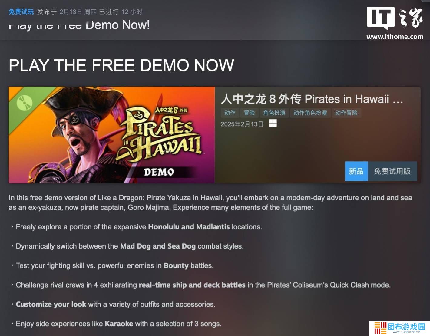近日,备受期待的游戏《人中之龙 8 外传:夏威夷海盗》已正式开启免费试玩活动。此次试玩版本允许玩家率先踏入檀香山与虚构的马德兰蒂斯区域,亲身体验游戏焕然一新的战斗机制。在试玩中,玩家将有机会参与到竞技